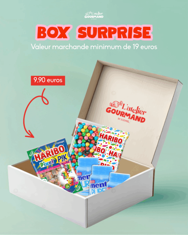 Laissez-vous surprendre ! Une box pleine de confiseries variées, colorées et 100 % gourmandes, pour un petit prix et un maximum de plaisir.