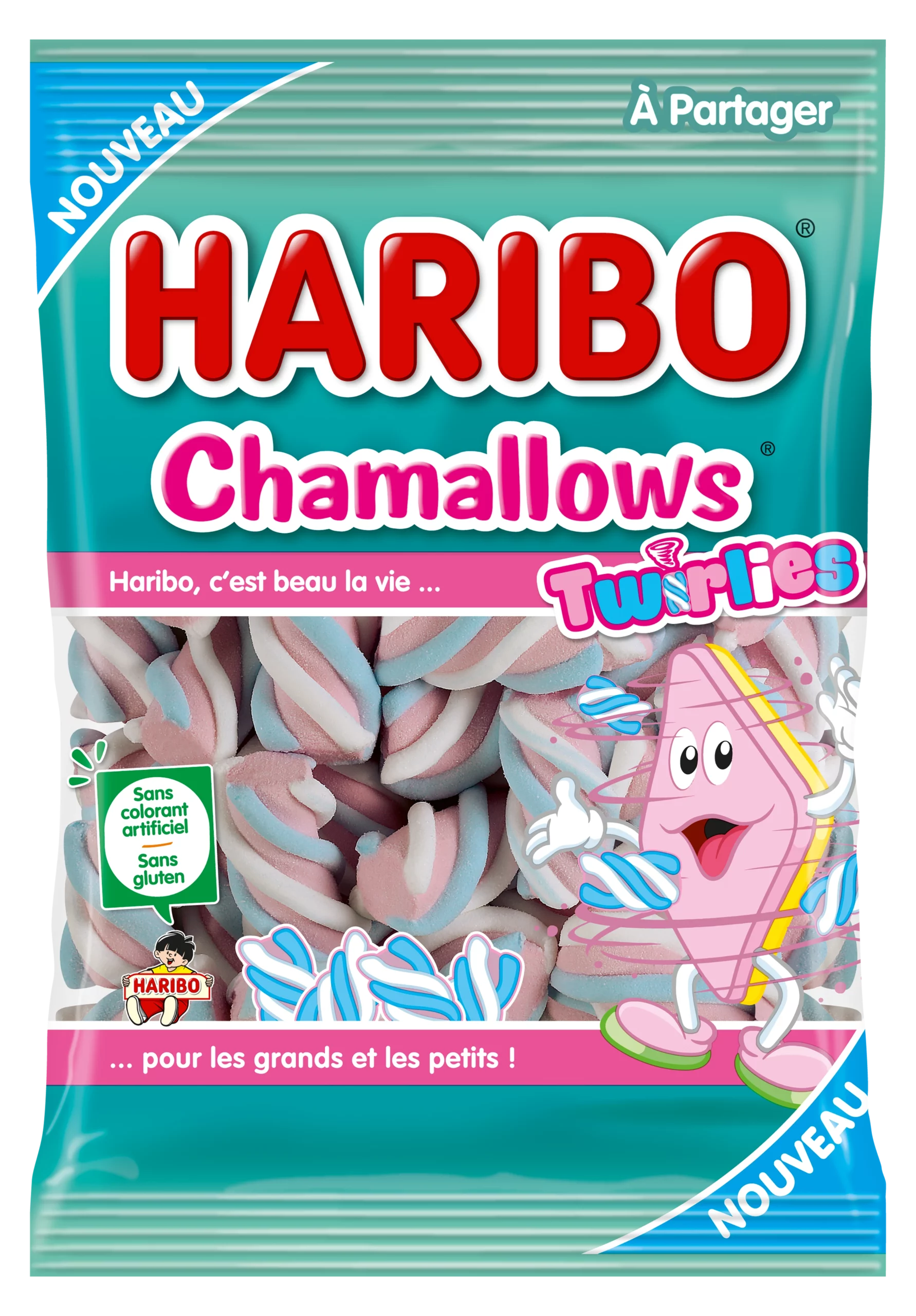 Les Chamallows Twirlies Haribo sont des guimauves tricolores en spirale au goût de fraise. Leur texture moelleuse et fondante apporte une touche gourmande à chaque dégustation.