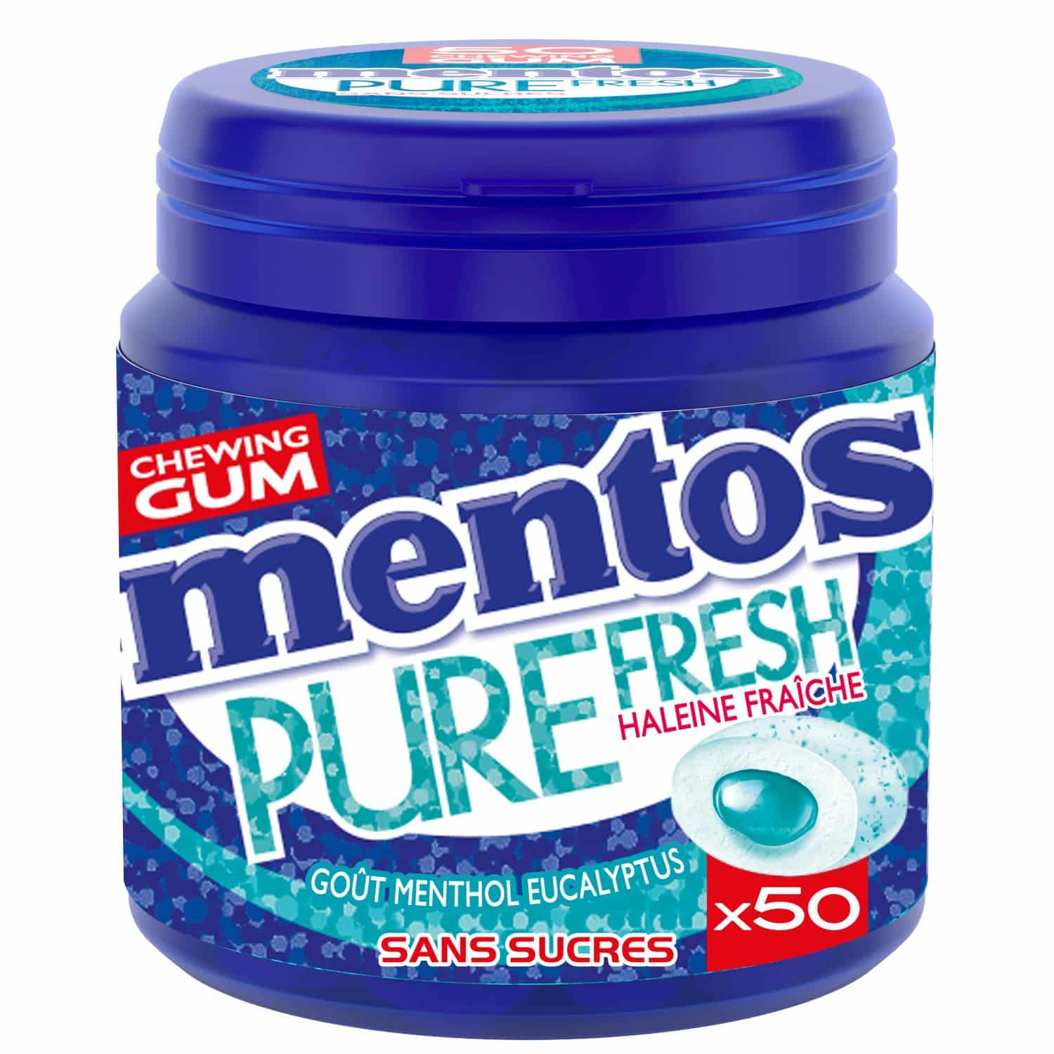 Ingrédients: édulcorants (xylitol (30%), sorbitol, mannitol, sirop de maltitol, aspartame, acésulfame-K), gomme base, stabilisant (glycérol), arômes, maltodextrine, épaississants (gomme arabique, gomme de cellulose, gomme xanthane), fécule, émulsifiants (sucroesters d’acides gras, lécithines (SOJA)), agent d’enrobage (cire de carnauba), huile de noix de coco, antioxydant (E321), colorants (bleu brillant FCF, curcumine).