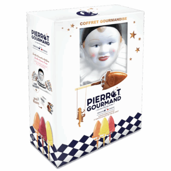 Coffret gourmandise – buste + étui 40 sucettes – Pierrot Gourmand