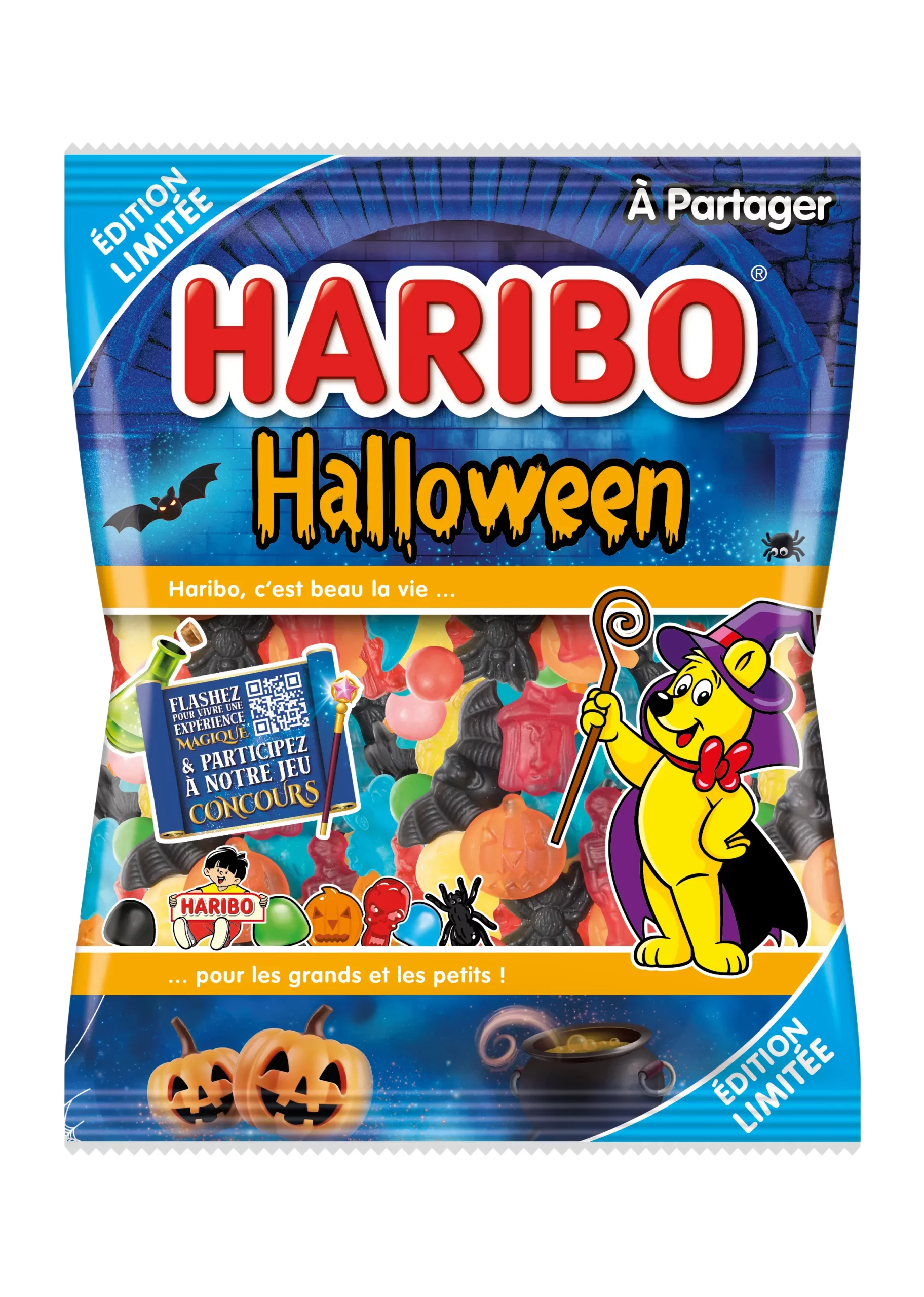 Une explosion de saveurs monstrueusement gourmandes ! Ce sachet Haribo Halloween renferme un assortiment coloré de bonbons gélifiés aux formes amusantes, parfaits pour régaler petits et grands lors des soirées d’Halloween 👻🍬.