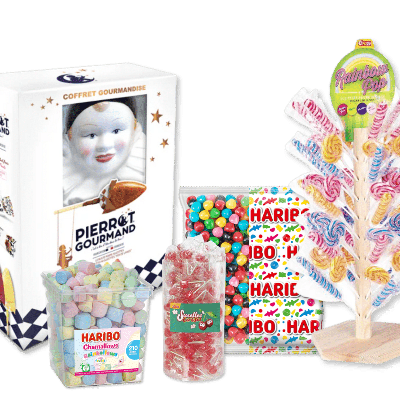 Qualité reconnue : uniquement des marques officielles Fizzy, Haribo et Pierrot Gourmand.