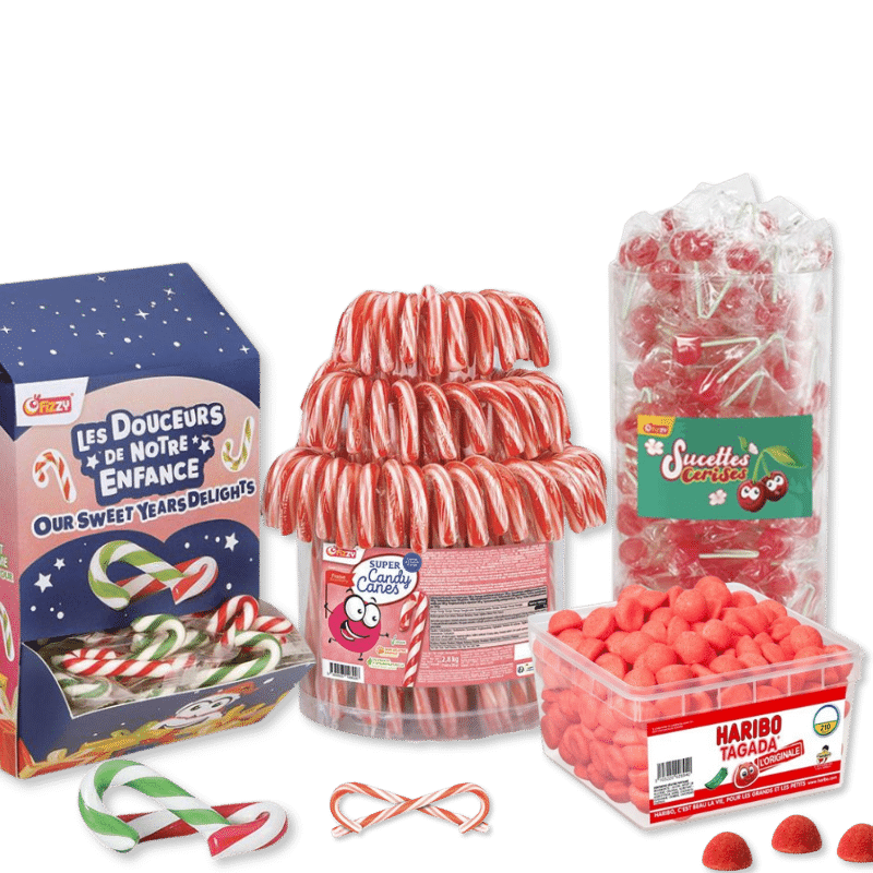 Un assortiment exclusivement rouge, parfait pour créer un candy bar chaleureux, traditionnel et totalement dans l’esprit de Noël.